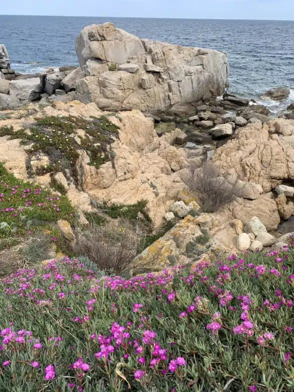 Just look at the colours, textures, movement, and contrast in this enchanting wild garden by the sea. The hard, grey rocks meet the undulating blue water, and perfect blooms pop up everywhere.