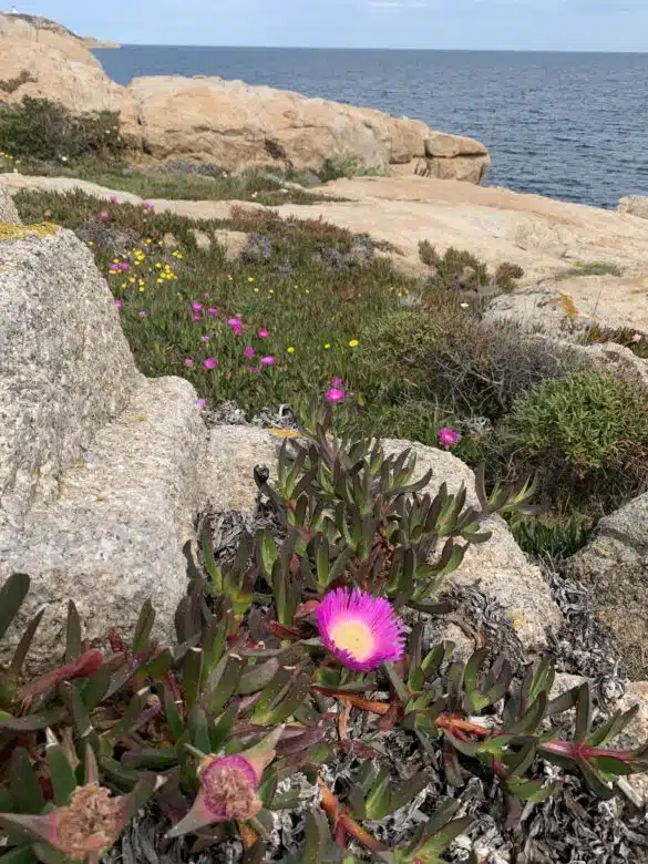 Just look at the colours, textures, movement, and contrast in this enchanting wild garden by the sea. The hard, grey rocks meet the undulating blue water, and perfect blooms pop up everywhere.